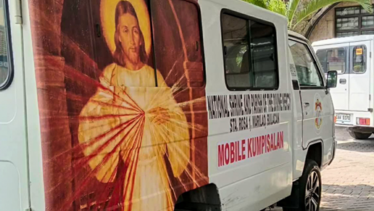 马洛洛斯教区国家神圣慈悲朝圣地于 4 月 8 日启动了“流动告解”活动,首站设在马洛洛斯大教堂。朝圣地主任阿尔文·皮拉神父(Fr. Pila)乘坐一辆绘有天主慈悲圣像的白色面包车,透过车窗为信友们听告解。